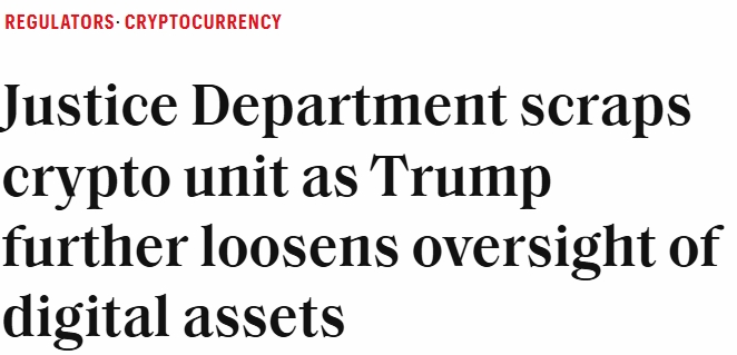 据路透社看到的一份备忘录显示,美国司法部正在解散其国家加密货币执法小组,并命令检察官缩小加密货币调查范围,重点关注贩毒集团和恐怖组织。