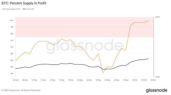 Glassnode解释说:“比特币的新历史高点得到现货、衍生品和链上市场的同步扩张的支持。流动性改善、强劲的ETF流入以及链上盈利能力的提高,凸显这一突破是由结构性资本流入和投资者参与度的增加支持的,而不是投机过剩。”