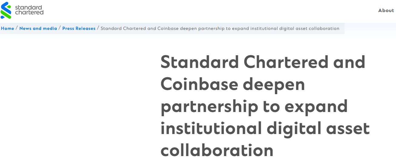 渣打银行和Coinbase扩展机构加密货币渠道,锁定银行和交易所基础设施