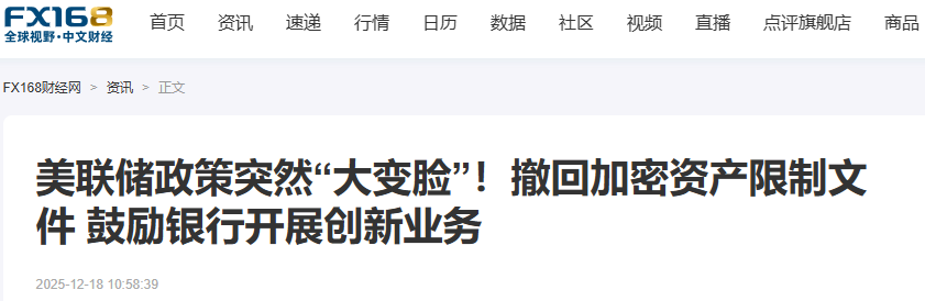 美联储政策突然“大变脸”!撤回加密资产限制文件 鼓励银行开展创新业务