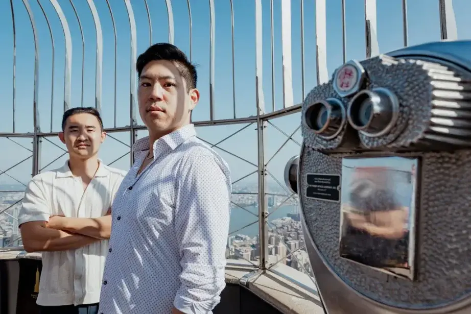 Plume 创始人 Chris Yin 与 Teddy Pornprinya 在帝国大厦留影