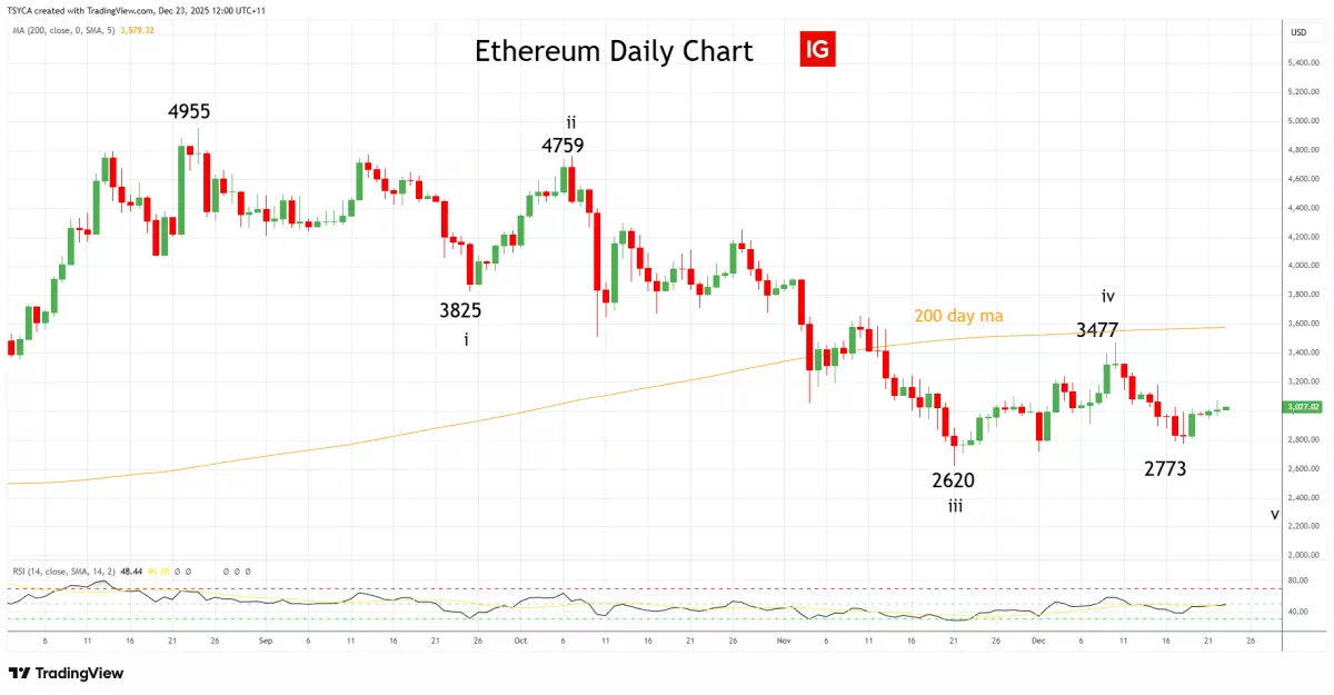 这意味着,只要以太坊仍受制于 3477 美元前高,并受到 200日均线(当前约 3600 美元) 的压制,下行趋势就有重新展开的风险,价格可能 再次测试并跌破 2620 美元,第五浪目标指向 2250 美元 区域。