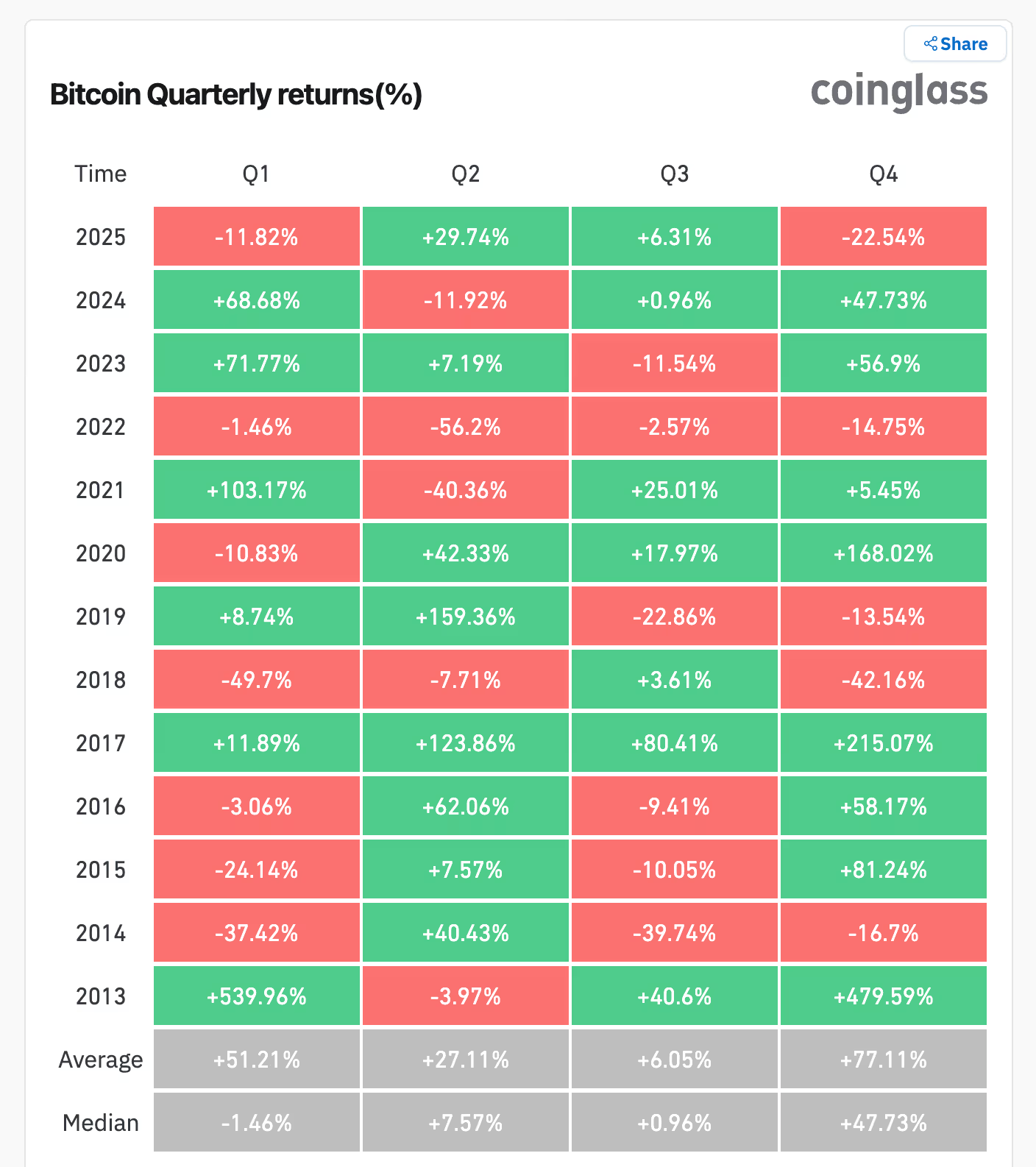 CoinGlass 数据显示,比特币在第四季度迄今已下跌逾22%,使2025年成为除重大熊市年份外,年末表现最疲弱的年份之一。