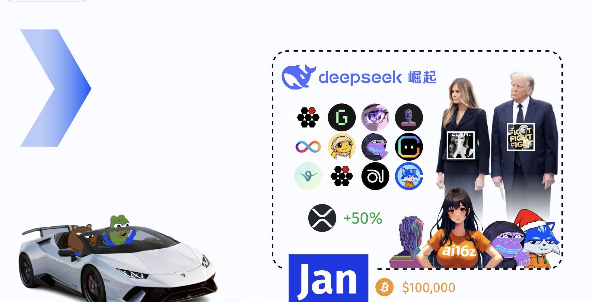但月底风向变了。1 月 20 日前后,DeepSeek 发布低成本 AI 模型,直接冲击了加密 AI Agent 的叙事,很多 Agent 比起来更像个过家家的玩具。