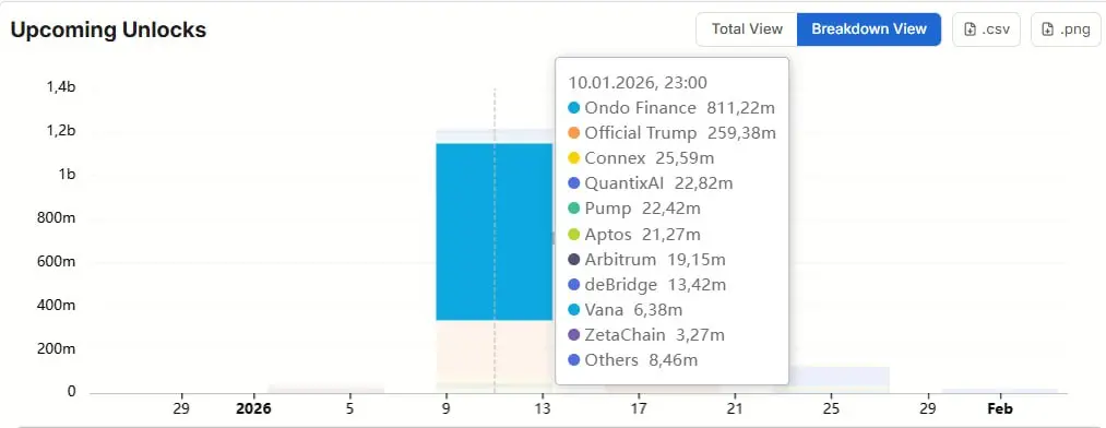 下周将有价值超 10 亿美元相关代币解锁,包括 ONDO、TRUMP 等