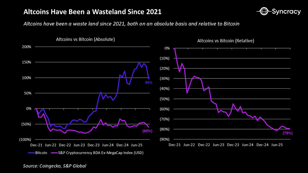 由于山寨币(Altcoins)经历了长达四年的熊市,市场情绪跌至谷底,顶级项目的多年期机会被市场错误定价,很少有分析师在建模中考虑指数级增长。
