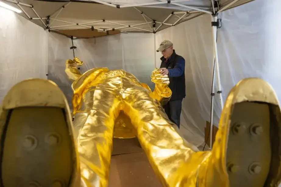 在 Pierce 将其介绍给项目团队后,Burns 便开始参与雕像相关工作。他很快成为推动项目重启的关键人物,提议为这尊青铜雕像镀上金箔。