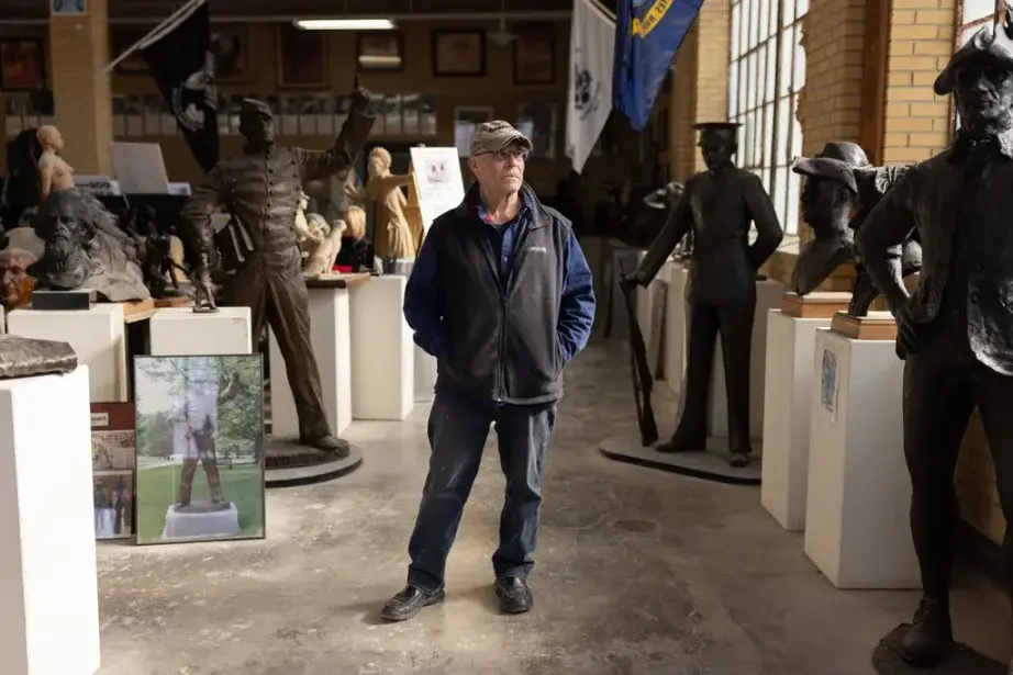 Cottrill 站在摆满雕塑的房间里
