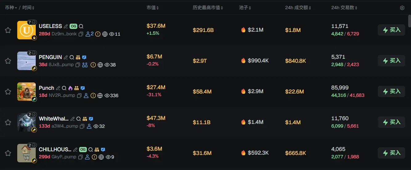 过去 24h Solana 热门代币前五依次为:USELESS、PENGUIN、Punch、WhiteWhale、CHILLHOUSE