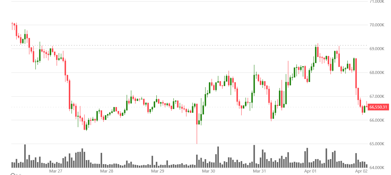 FX168财经报社(亚太)讯 周四(4月2日)比特币跌超2%至6.66万没有附近,在特朗普于黄金时段向全国发表讲话后回吐昨日的涨幅。特朗普在讲话中表示,未来两到三周美国将对伊朗实施“极其猛烈”的打击,而不是像市场此前预期的那样释放局势降温信号。