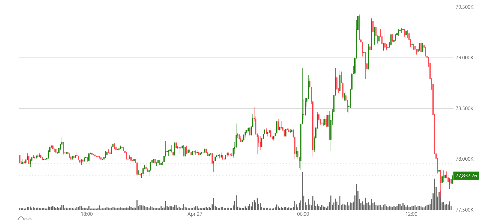 FX168财经报社(亚太)讯 随着投资者权衡美国与伊朗围绕霍尔木兹海峡僵局的最新进展,比特币继续缓慢向80,000美元攀升,但很快冲击失败回落至7.78万美元附近在,这一关口阻力强劲。
