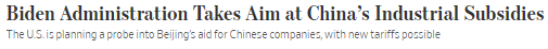 FX168财经报社(北美)讯 周五(9月10日),据彭博、华尔街日报等媒体援引知情人士说,拜登政府正在考虑对中国补贴及其对美国经济造成的损害展开新的调查,以此在贸易方面向中国方面施压。