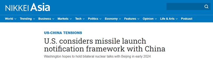 据《日经亚洲》报道,这位高级官员表示,华盛顿方面希望明年年初与中国就军备控制问题举行会谈,而导弹发射通报机制是美国政府正考虑的具体措施之一。