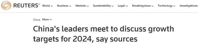 FX168财经报社(香港)讯 据英国路透社周二(12月12日)最新报道,据四位知情人士透露,中国领导人周一开始了一次闭门会议,讨论2024年经济目标并制定刺激计划。