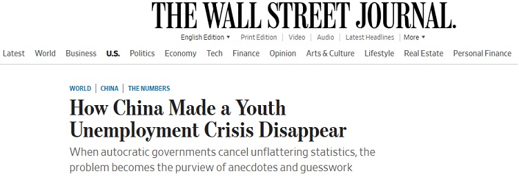《华尔街日报》文章最后指出,这些数据点和轶事都讲述了一个关于经济的令人不安的故事。但由于没有适当的统计数据,它们无法直接回答中国不想被问到的问题:青年失业率有多高?换句话说,隐藏青年失业数据的做法奏效了。