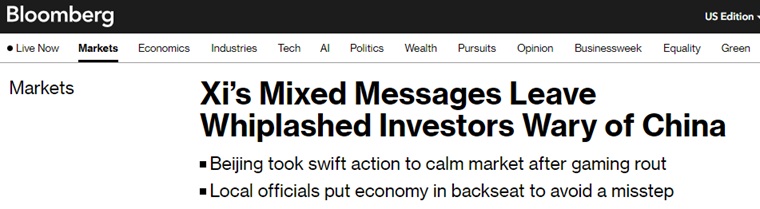 在中国开展业务的商业领袖告诉彭博社,北京在安全和经济方面发出混杂信息的冲击使投资者变得更加谨慎。