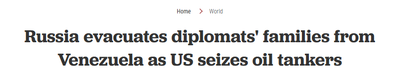 FX168财经报社(北美(讯 一名欧洲情报官员周一(12月22日)向美联社表示,俄罗斯外交部已开始从委内瑞拉撤离外交人员家属。此举发生之际,美国正在加勒比海追踪并拦截第三艘受制裁的委内瑞拉相关油轮,同时总统唐纳德·特朗普在其位于佛罗里达州的海湖庄园(Mar-a-Lago)召集高级国家安全官员。