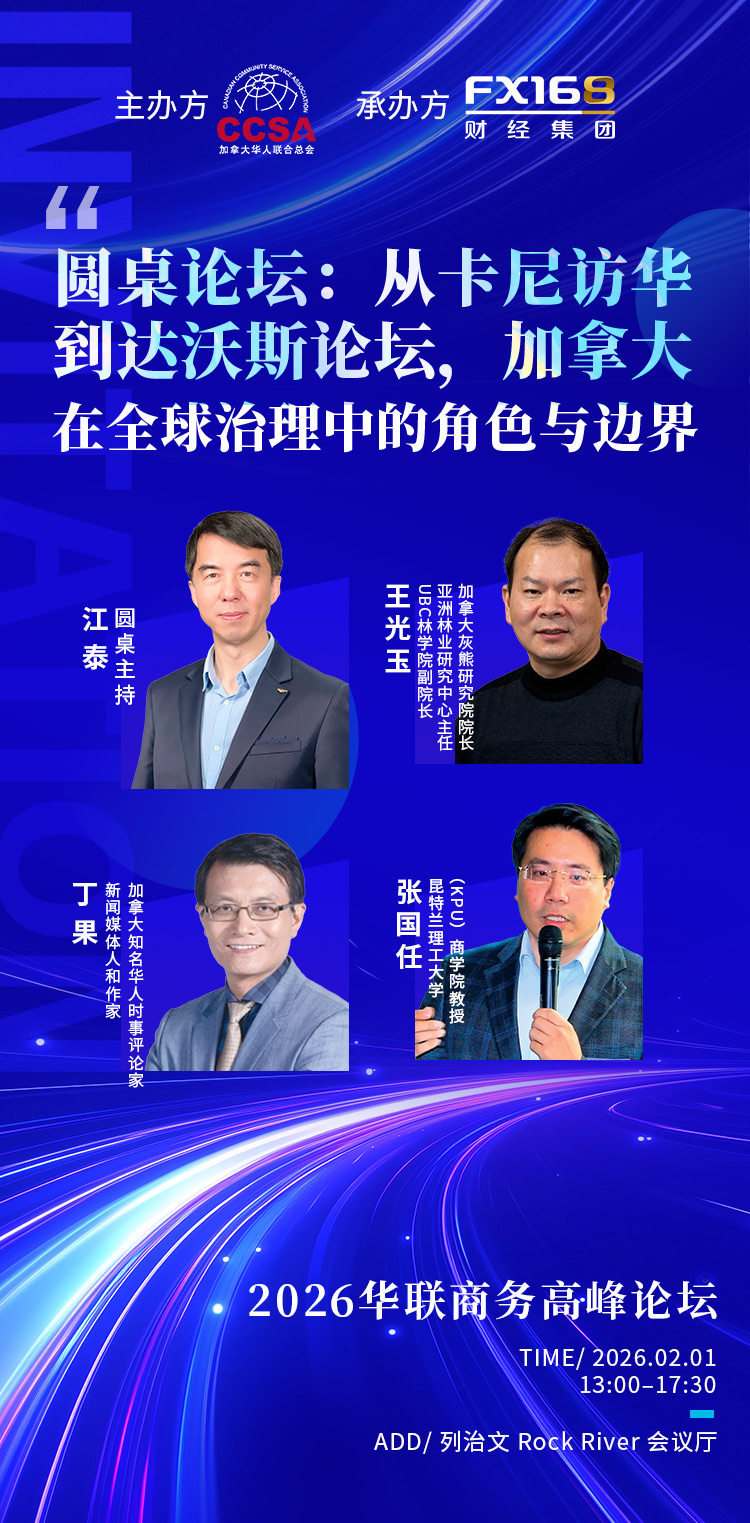 第一板块的圆桌讨论将聚焦全球治理议题,从卡尼访华到达沃斯论坛,深入探讨加拿大在国际体系中的角色定位与政策边界,分析其在多极化世界中的战略选择。