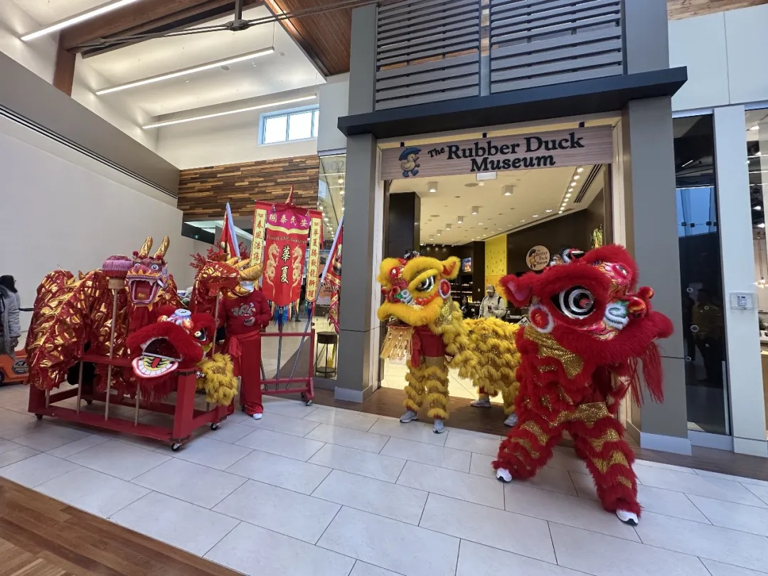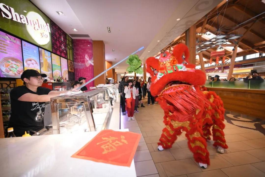 随着舞龙舞狮队伍绕行商场一圈,锣鼓喧天、祥狮献瑞,在各商户门前高挂生菜,正式展开年度重头戏——「采青」仪式。浩荡队伍吸引大量顾客沿途跟随,共同见证活动最高潮之一,现场气氛热烈、喜气洋洋。本次参与采青的商户包括:Shanghai 360、Atsuta、手机Kiosk、珠宝Kiosk、祥利、Lee’s Donuts、Nest球馆、FlyOland、Rubber Duck Museum 及 Woody Baker。祥狮登门采青,寓意「生财有道、好运临门」,象征为商户咬下好彩头、带来新一年生意兴隆、财源广进。在锣鼓声与欢呼声中,这场跨越时空、融合传统与现代的文化盛宴圆满落幕,也为商场注入满满福气与新春旺气。